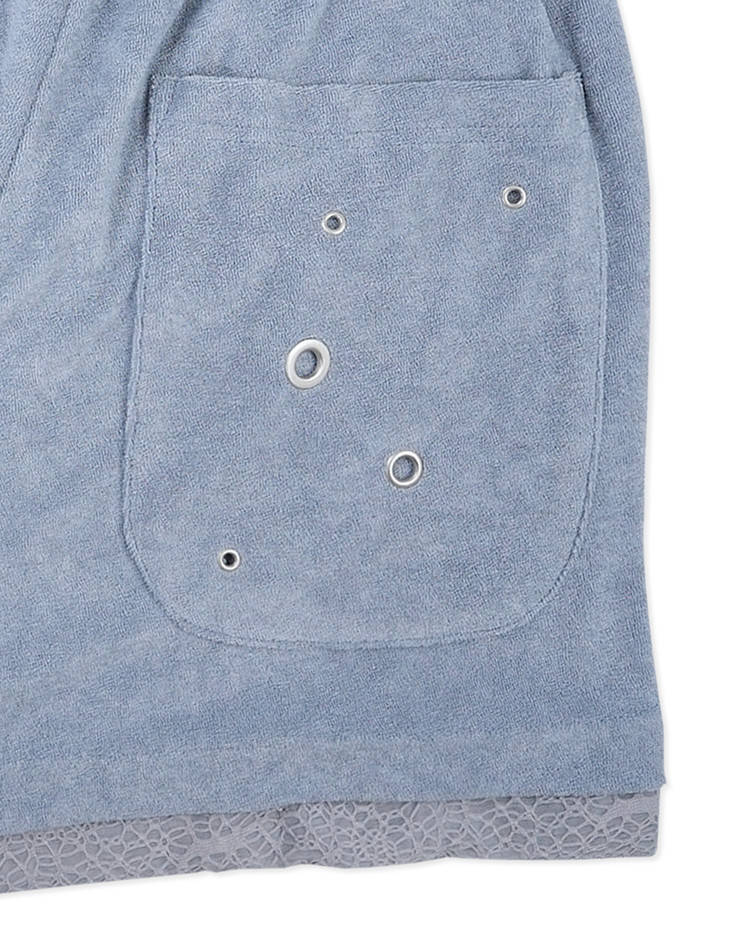 - 테리 원단- 밑단 레이어드 패널 원단- 백포켓 아일렛 디테일