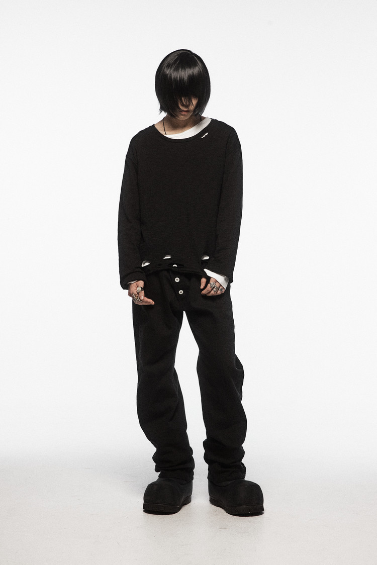 TWISTED STRAIGHT DENIM PANTS (BLACK)