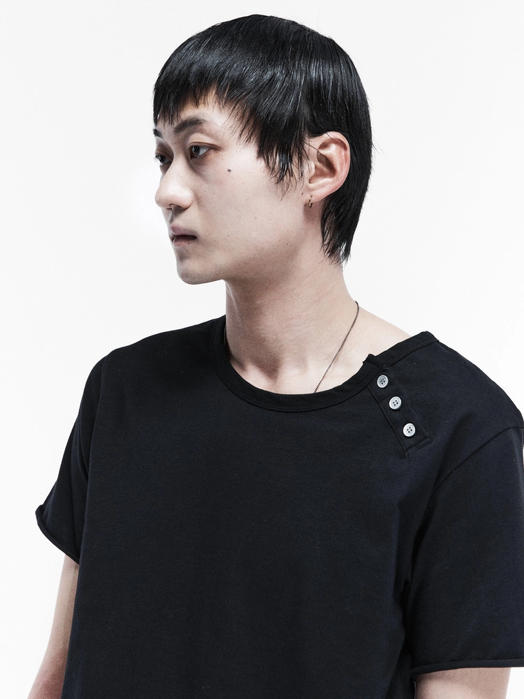 HENLEY NECK T-SHIRTS (BLACK)